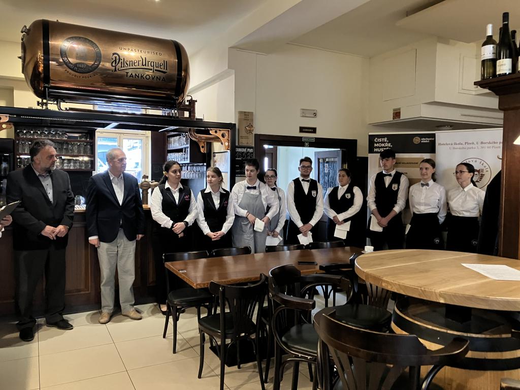 Žáci 3. ročníku učebního oboru kuchař - číšník Střední školy zemědělské a potravinářské, Klatovy se zúčastnili v pátek  16. května 2025  již 17. ročníku soutěže v čepování piva o "Plzeňský korbel”, který se konal pod záštitou Hotelové školy Plzeň a Plzeňského Prazdroje v restauraci a pivnici U  Salzmannů.