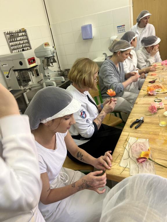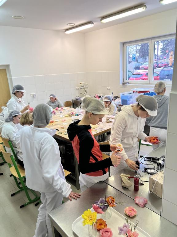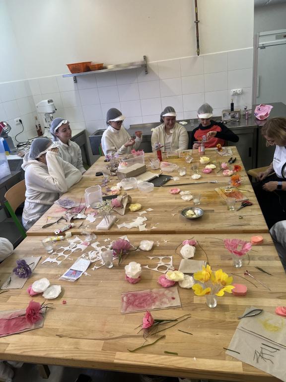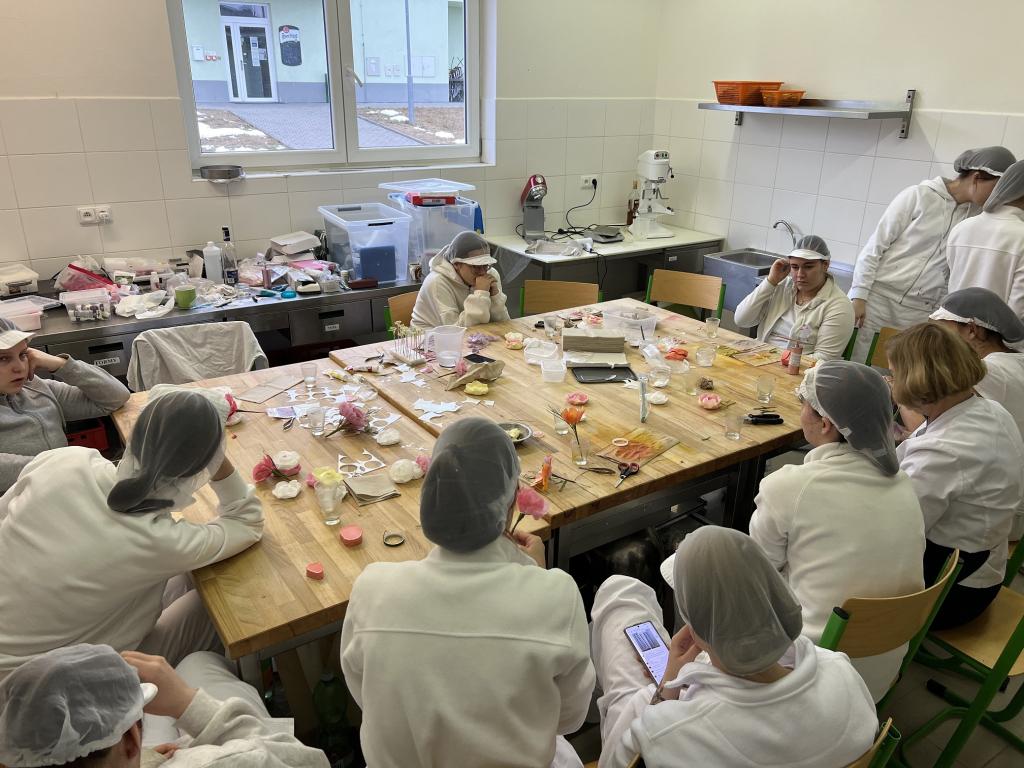 V úterý 3. února 2026 lektorka Alena Pechlátová provedla naše žákyně 3. ročníku oboru cukrář kurzem zaměřeným na "OZDOBY NA DORT - KVĚTINY Z JEDLÉHO PAPÍRU". Akce se uskutečnila v rámci projektu Implementace dlouhodobého záměru vzdělávání Plzeňského kraje, paní Pechlátová zde byla jako odborník z praxe.