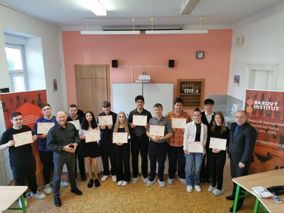 Barman Bc. Radim Janoušek z barového institutu Praha připravil pro žáky velmi zajímavý a akční kurz. Žáci se učili nejen různé metody míchání drinků a koktejlů, ale i jejich servis. Samozřejmě se v kurzu nezapomnělo na pravidla vystupování, společenského chování, etiketu. Žáci si vyzkoušeli různé modelové situace. Barmanský kurz byl zakončen teoretickou a praktickou zkouškou. Po úspěšném zakončení kurzu obdrželi žáci certifikát s mezinárodní platností.