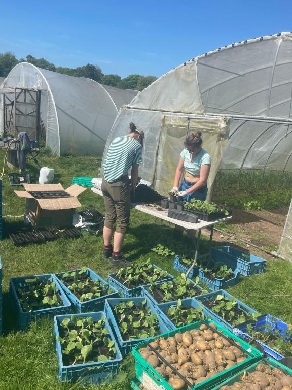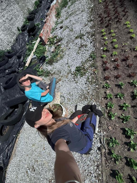 Farma Richardś little farm a pracovníci Kateřina Hromádková a Adéla Bartoňová: „Dnes jsme sázely saláty a fazole. To nám zabralo pomalu cenný den. Také jsme zalévaly a krmily prasata. A připravovaly půdu na zasetí.“