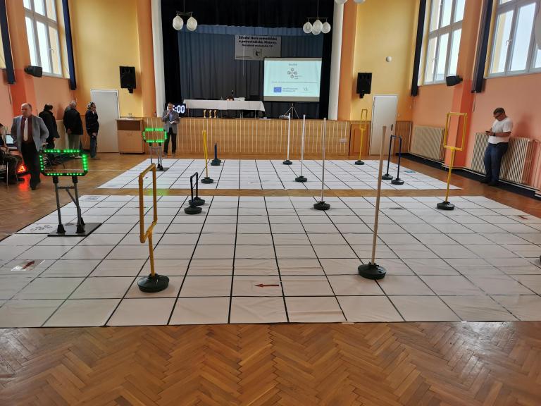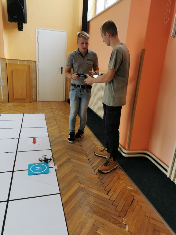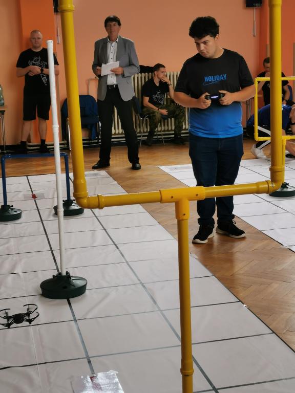 Úkolem soutěžících bylo prolétnout dronem stanovenou dráhu s různými překážkami v co nejkratším čase.