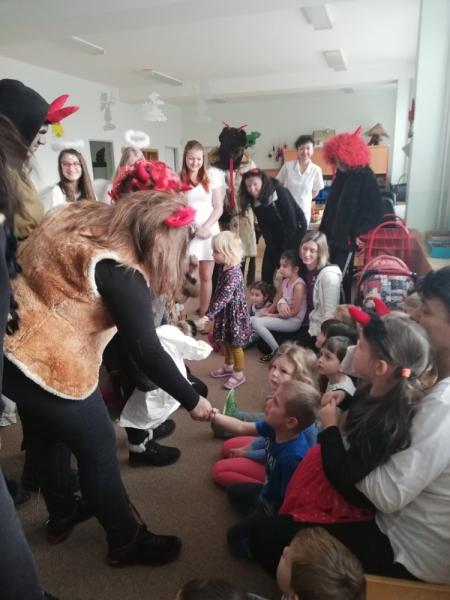 Na středu 5. prosince vyšel v kalendáři svátek sv. Mikuláše, a tak jsme se opět převlékli za čerty, anděly a Mikuláše a vyrazili nadělovat. Tradičně jsme zavítali na MŠ a ZŠ Hálkovu, MŠ Sluníčko a Karafiát, Charitu – Domov pokojného stáří. Na odpoledne jsme pozvali kamarády z denního stacionáře k nám Na Zemědělku. S nimi se přišli podívat i jejich rodiče.